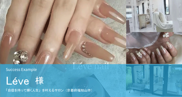 Léve様京都府福知山市で、お客様一人ひとりと向き合うサロンです。私たちが大切にしているのは、単に爪を彩るだけでなく手元を見るたびに心が躍り、自分に自信を持って輝ける毎日をお届けすること。 「予約の取りやすさ」や「通いやすさ」にもこだわり、お客様の大切な時間を守るための専用アプリも導入しています。 現在はネイルを主軸に、今後はエステやアイメニューなど、女性の美をトータルでサポートする場所へと進化中。 あなたの人生がもっと輝くお手伝いを、ぜひ「Léve」にさせてください。 |
